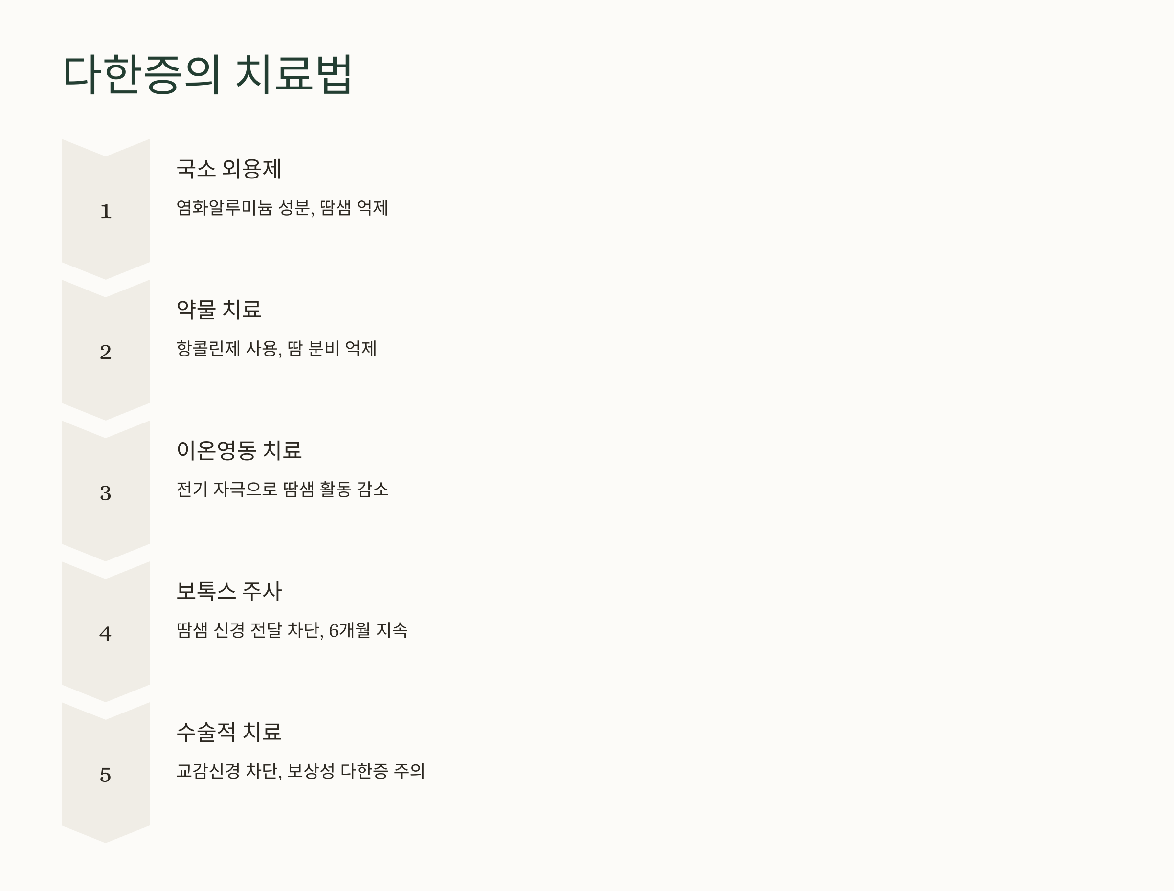 다한증은 증상의 정도와 원인에 따라 다양한 치료법이 있어요. 😃