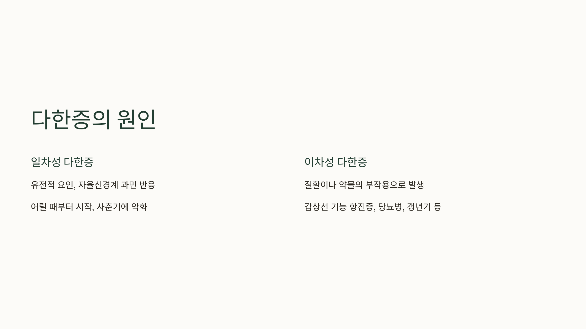 다한증은 크게 일차성 다한증과 이차성 다한증으로 나뉘어요.